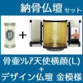 商品名:納骨仏壇【骨壷sorea 大天使ラファエル横顔 [Lサイズ] パールホワイト+仏壇 黒・飾り板[金模様]】セット