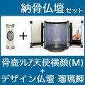 商品名:納骨仏壇【骨壷sorea 大天使ラファエル横顔 [Mサイズ] パールホワイト+仏壇 黒・飾り板[瑠璃輝]】セット