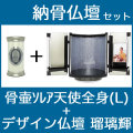 商品名:納骨仏壇【骨壷sorea 大天使ラファエル全身 [Lサイズ] パールホワイト+仏壇 黒・飾り板[瑠璃輝]】セット