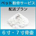 ペットの粉骨パウダー加工サービス【配送6寸・7寸】は、6寸もしくは7寸サイズの骨壺に納められたペットのお骨を、当店粉骨工房に「ゆうパック」でお送りいただきます。ご購入いただいた小さなデザイン骨壺に、粉末状になったお骨の粉骨を納めた状態で、ご自宅宛に「ゆうパック」でお届けするサービスです。骨壺のサイズの確認方法は、下記「陶磁器製の骨壺の大きさの確認方法」をご覧ください。 | ||||||||||||||||||||||||||||||||||||||||